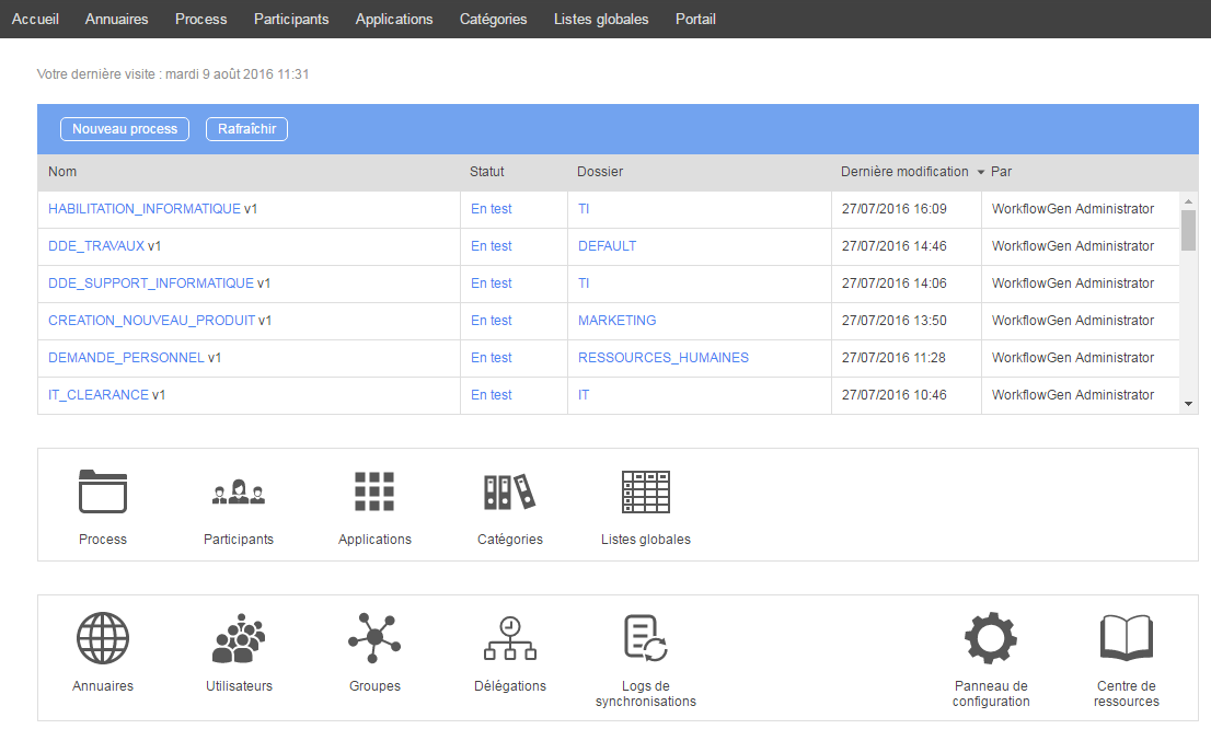 Le module d’administration WorkflowGen est une application Web dont les fonctions principales sont :