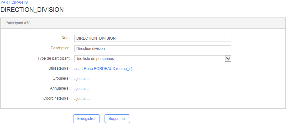 • Participants, pour accéder à la liste des participants et par la suite éditer un participant.