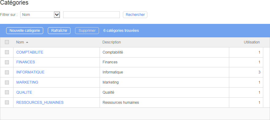 Cliquez sur Catégories sur le bandeau pour ouvrir la liste des catégories.