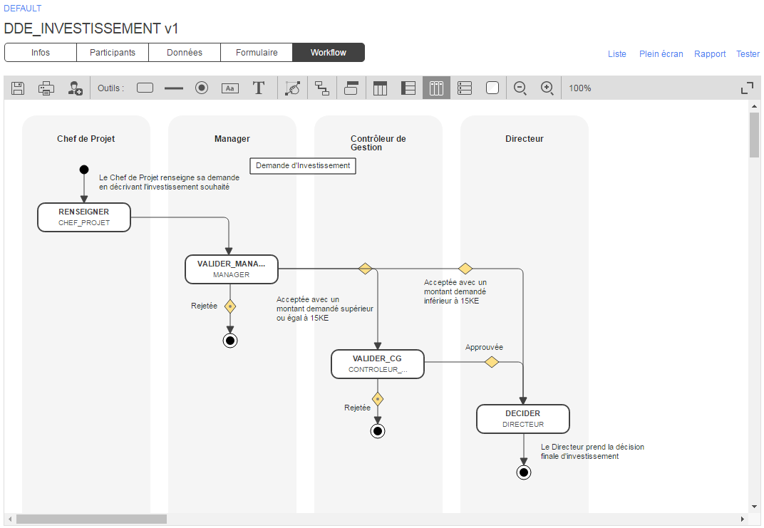 • Workflow (vue Graphique ou Liste)