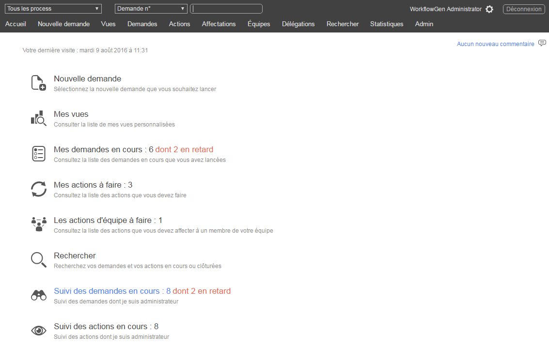 • Les superviseurs de processus n’auront pas accès au module d’administration, mais peuvent avoir accès au module statistiques de leur processus via le portail.