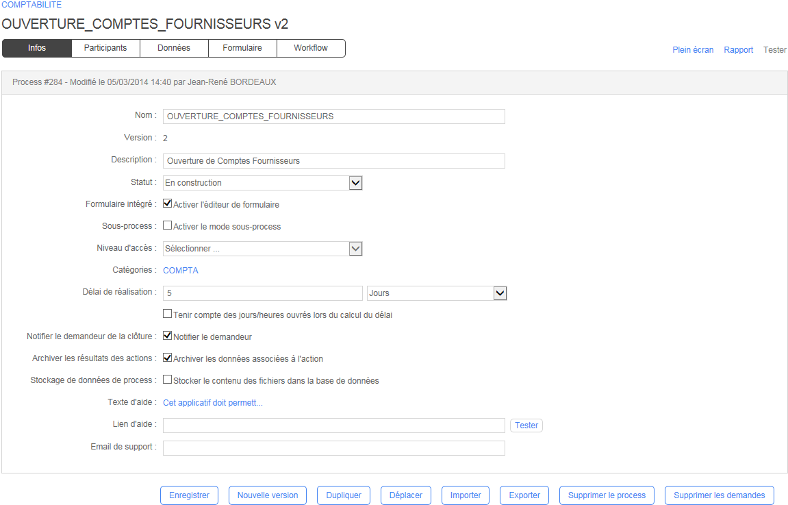 L’activation d’un processus induit l’archivage de la version active. Les demandes en cours utilisent la version du processus active au moment de leur création.