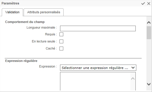 Le champ de contrôle utilisateur supporte les paramètres personnalisés des attributs (voir Paramètres de la pièce jointe).