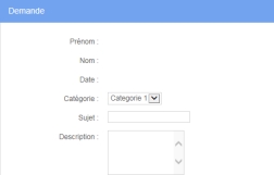 Une section qui contient un prénom, nom, et champ de date en lecture seule, ainsi qu’un bouton radio d’approbation et un champ texte multi-lignes pour commentaires.