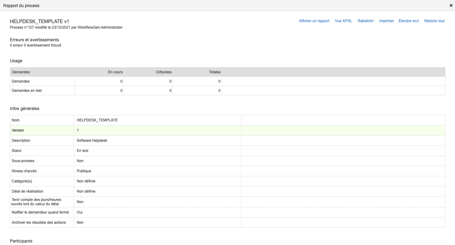 Écran rapport d’un processus