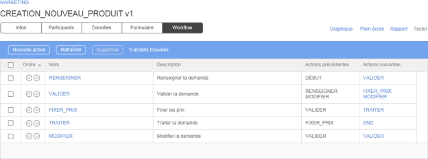 Les flèches permettent la modification de l’ordre d’affichage des actions dans le workflow du processus