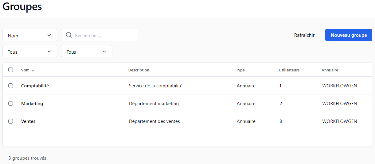 Annuaire : Un groupe d'utilisateurs d'un seul annuaire (créé par une synchronisation ou défini dans WorkflowGen)