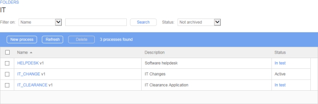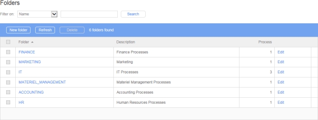 Processes are organized in folders administered by managers. Only one folder level is possible in WorkflowGen.
