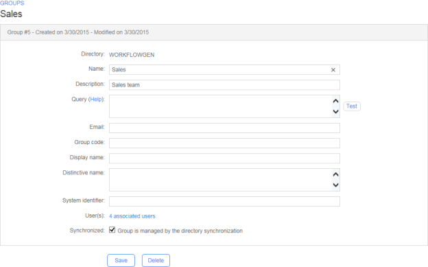 Number of users associated to the group (a link displays the corresponding users)
