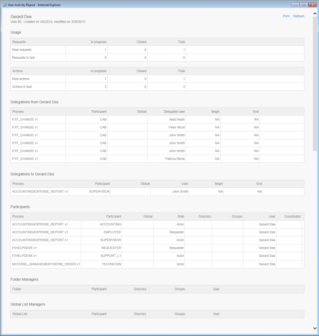 The user activity report can be generated by selecting the Activity report link in the user’s profile page.