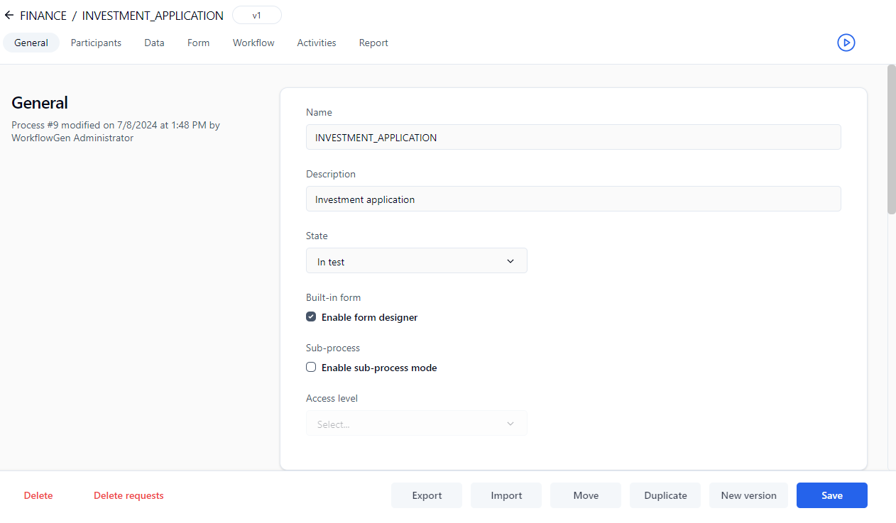 ✏️ Note: Only processes with forms created with the built-in Form Designer can be used as workflow templates.