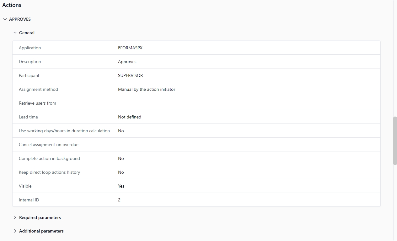 For an application or a sub-process, all the required parameters of an action must be defined.