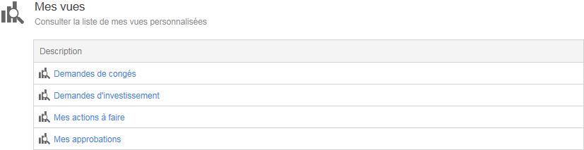 Ceci est la liste des vues personnalisées de l’utilisateur.
