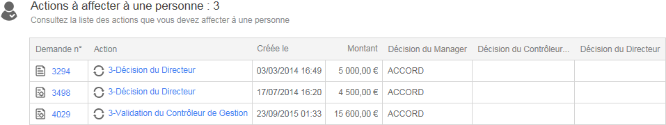 Ceci est la liste des demandes en cours dont l’utilisateur est le demandeur.