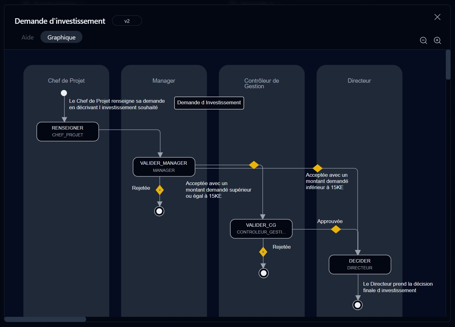 Affiche la vue graphique du processus (uniquement disponible pour les utilisateurs autorisés)