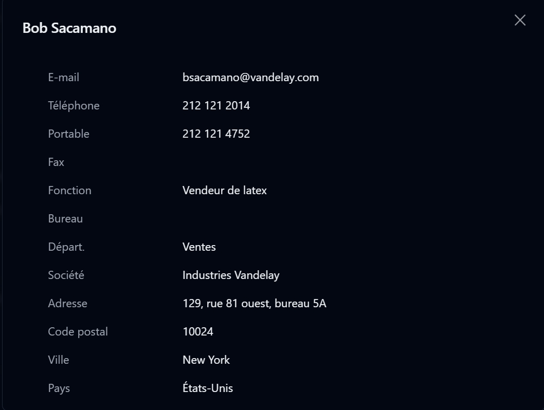Adresse email de l’utilisateur (un lien permet l’envoi d’un email à l’utilisateur)
