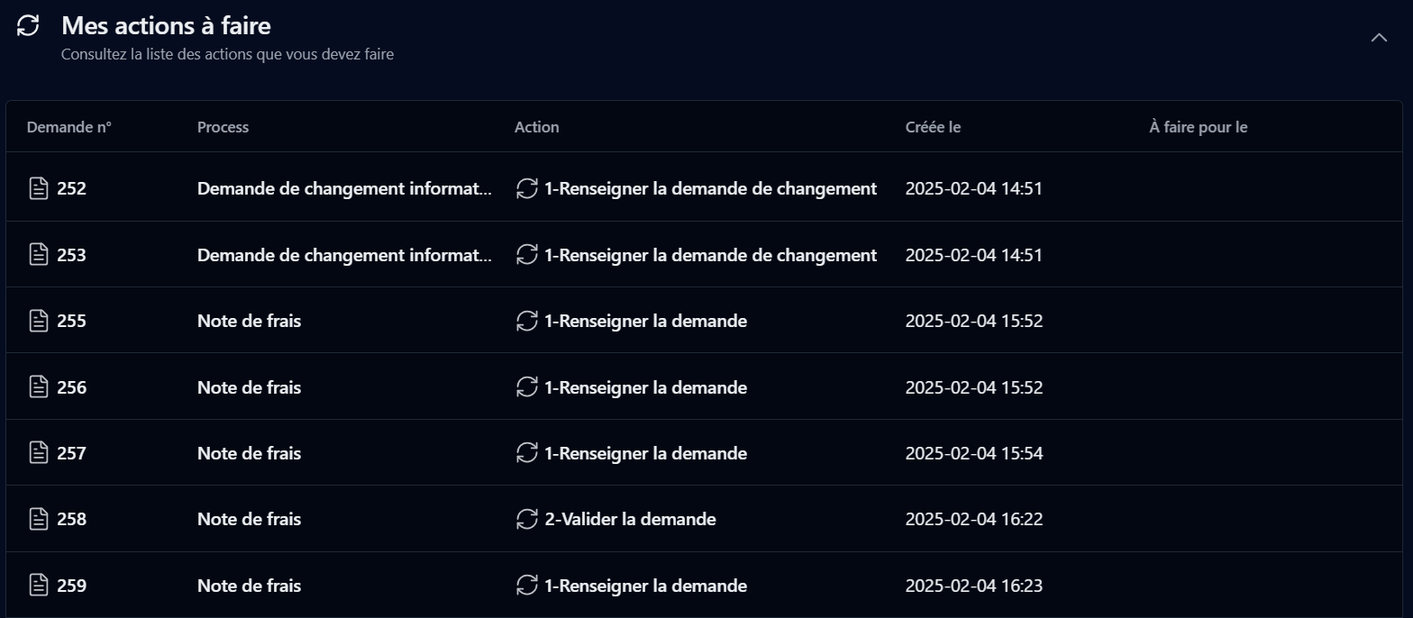 Ceci est la liste des demandes en cours dont vous êtes le demandeur.