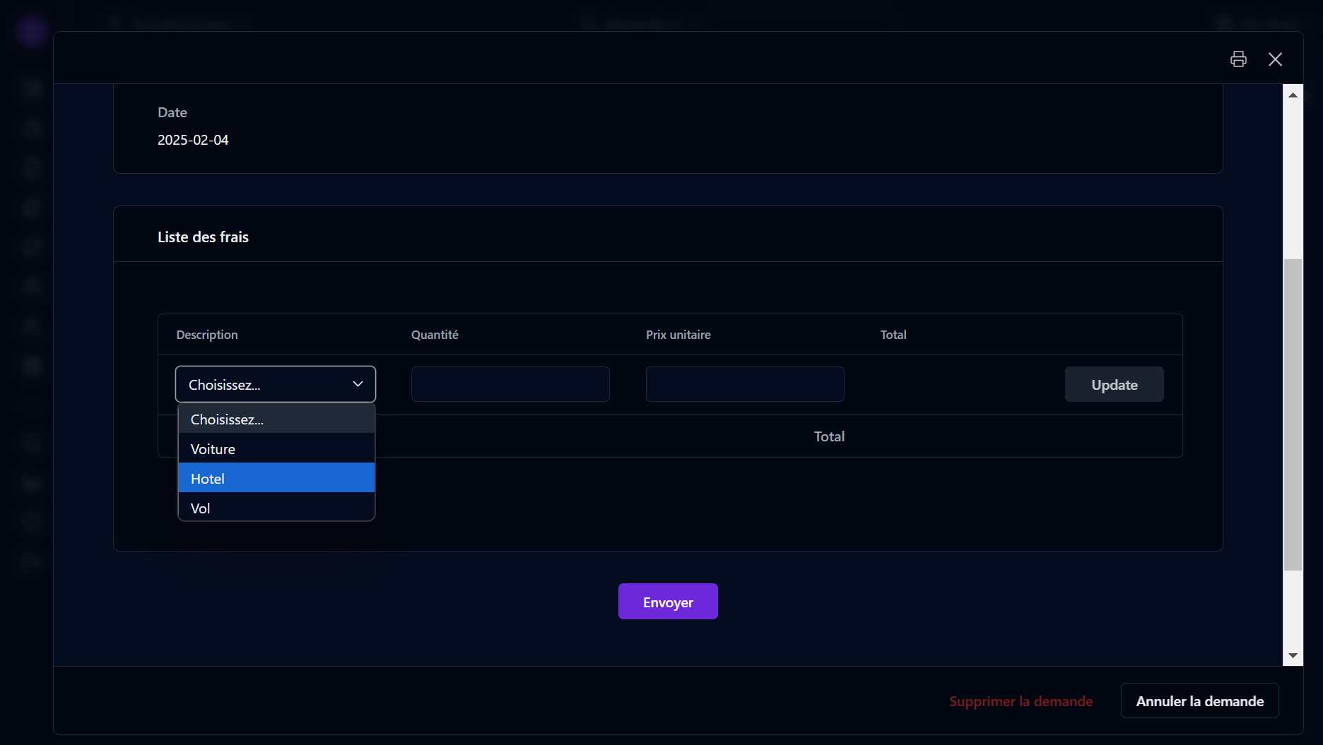 et, selon le statut du processus et les paramètres de sécurité utilisateur, supprimer ou annuler la demande.