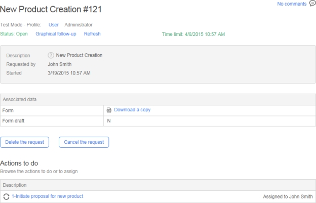 An action with the Self-service assignment method can be launched by a participant if the action has not been accepted or assigned.