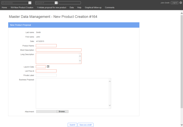 Process name: A link allows a new request to be launched.