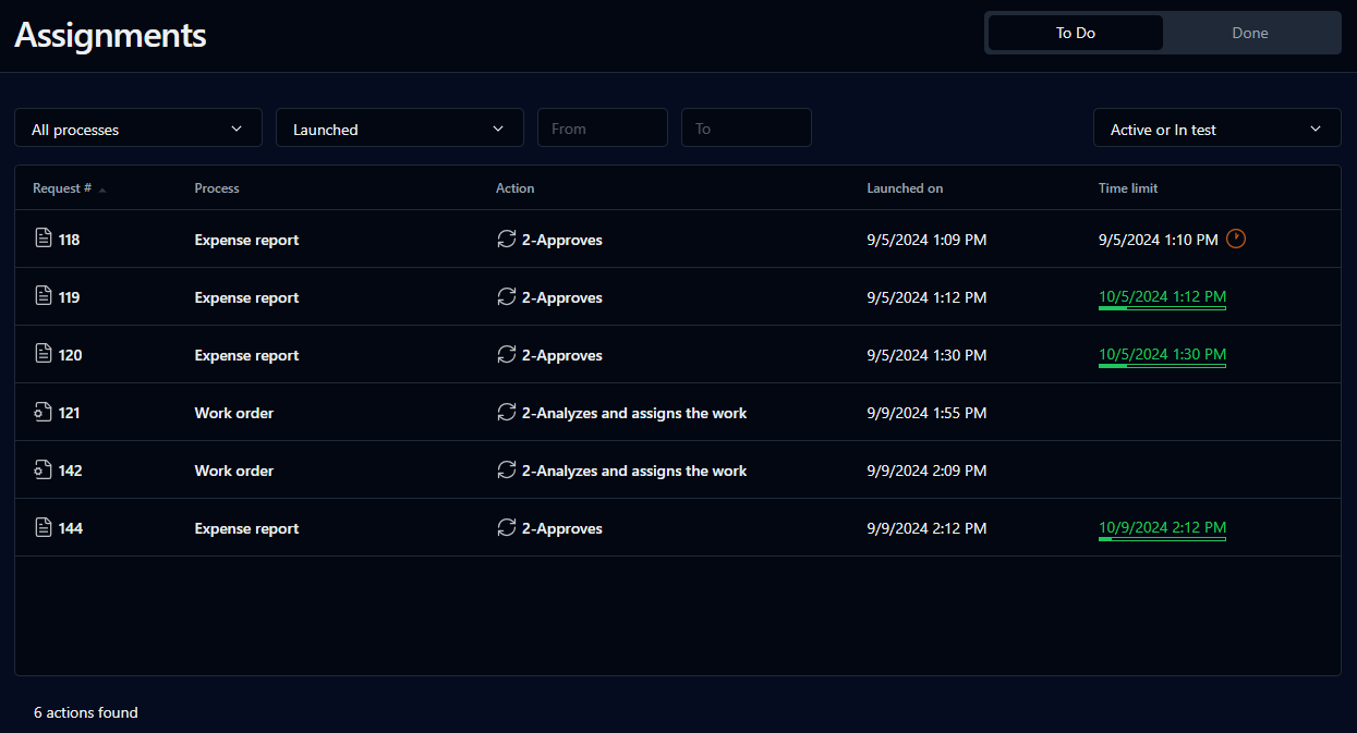 Filter by actions to be assigned