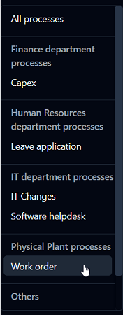 Opens the New request screen, which contains a list of processes you have access to and can launch