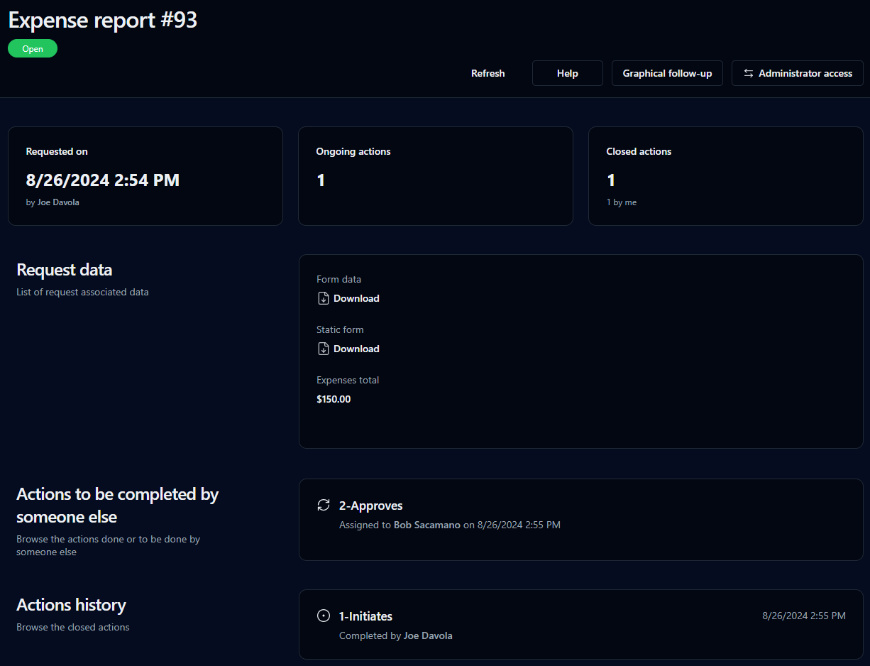 Display the graphical follow-up of the request (only available for allowed participants)