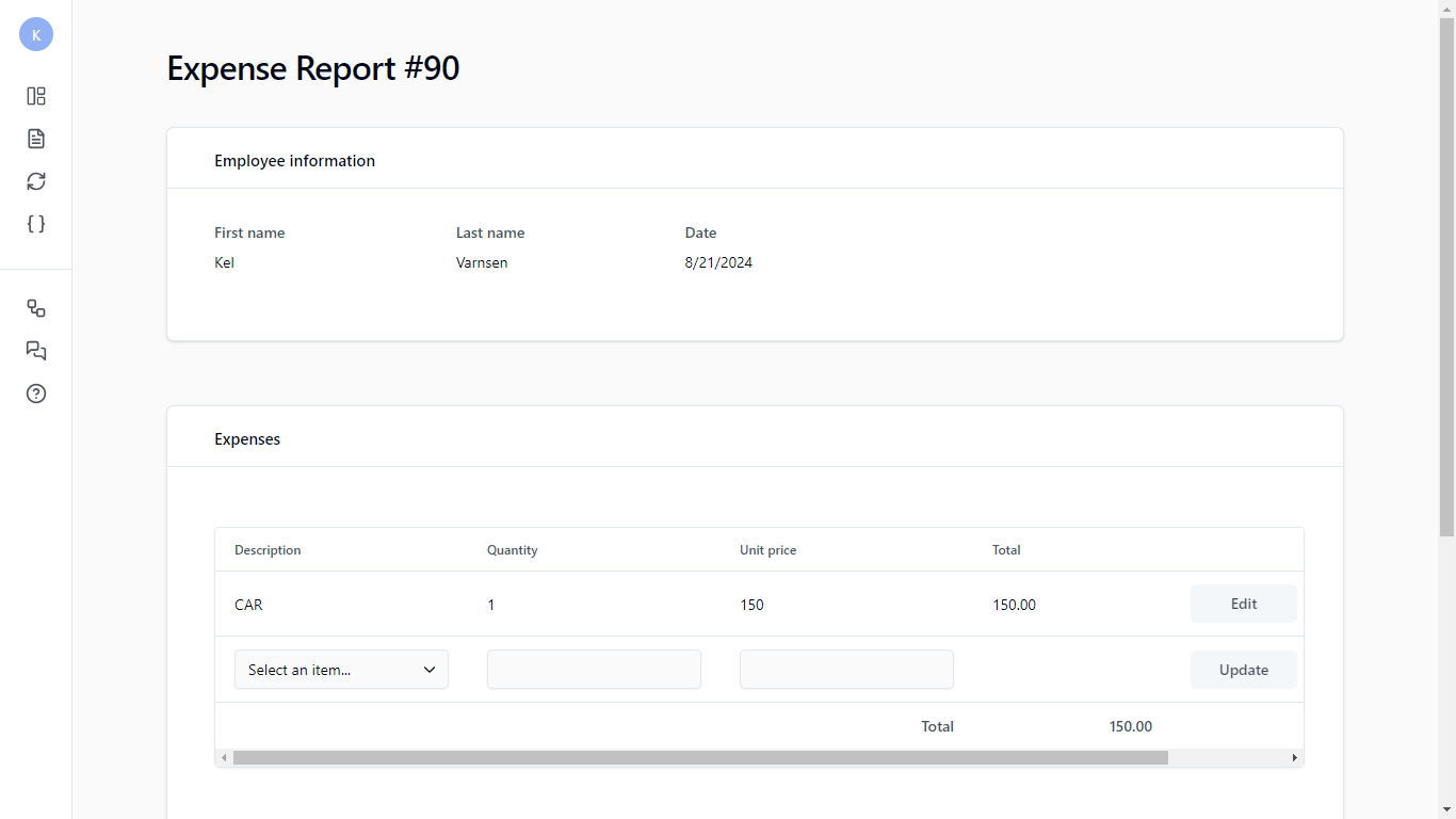 When you launch a new request, a new left menu appears.